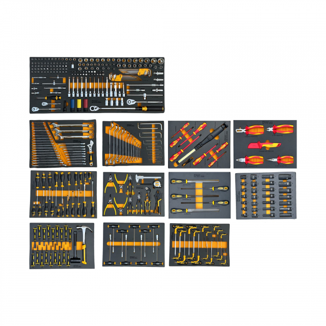 Met 14 royale laden biedt de DW14 meer dan genoeg ruimte om al uw gereedschap op te bergen. Van deze laden zijn er 12 volledig gevuld met een indrukwekkende set van 755 hoogwaardige handgereedschappen. Deze gereedschappen zijn zorgvuldig georganiseerd in schuimrubberen modules, zodat ze altijd binnen handbereik en goed beschermd zijn. Dankzij het 100% uittrekbare quick lock systeem zijn de laden eenvoudig te openen en te vergrendelen, wat zorgt voor een veilige en efficiënte werkervaring.